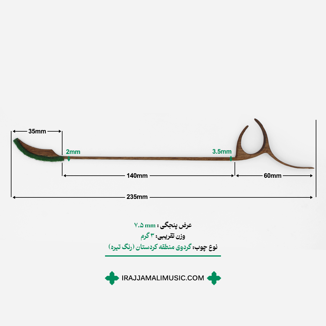 مضراب ایرج مدل حرفه ای که از بهترین و مرغوب ترین چوب درخت گردو سنندج تولید شده، تمام ویژگی های یک مضراب با کیفیت برای سطح حرفه ای را دارا می باشد.
