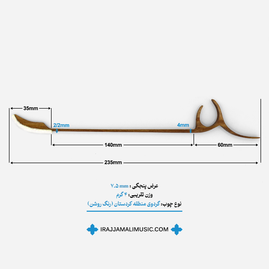 مضراب ایرج مدل هنرجویی که از بهترین و مرغوب ترین چوب درخت گردو سنندج تولید شده، تمام ویژگی های یک مضراب با کیفیت برای سطح هنرجویی را دارا می باشد.